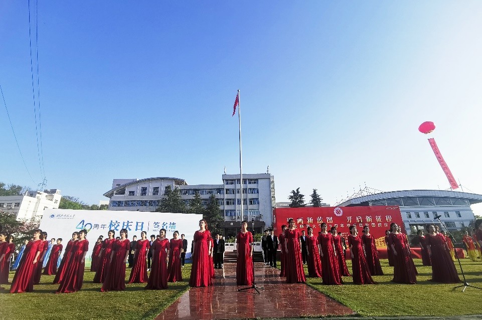 仪式最后,全体师生合唱校歌《我们是光荣的湖师人》,悠扬的旋律在校园上空久久回响,广大师生纷纷在49周年校庆日签名墙上写下对学校的美好祝福并驻足合影留念。