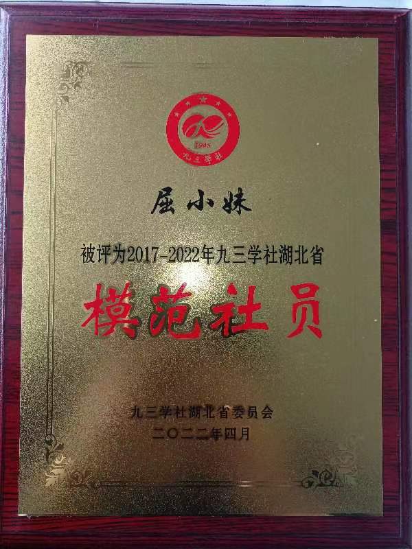 本网讯 4月17日至20日,九三学社湖北省第八次代表大会在武汉召开,九三学社威廉希尔中文官方网站委员会主委屈小妹应邀参会,并被评为2017-2022年九三学社湖北省模范社员。