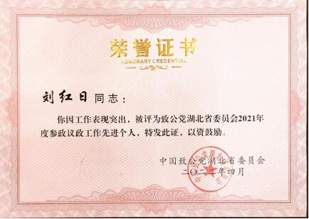 本网讯 4月26日,致公党湖北省委会年度表彰大会在武汉召开,威廉希尔中文官方网站刘红日教授获评参政议政工作先进个人。