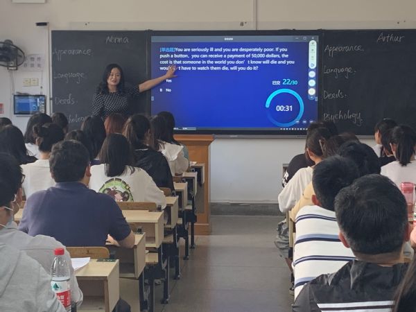 此次活动由教务处主办,两场分别由文学院和外国语学院承办,采用线上线下同步直播方式进行,勤敏课程思政刘敏工作室等未到场的老师及其他高校教师通过扫描二维码观看现场直播并展开了线上互动。文学院教师李治平和外国语学院教师唐凤华分别以“现代汉语量词”和“Unit 11 Button, Button”为题进行了教学示范。示范结束后,学院专家、教师代表、学院督导采用对话式的评课方式从教学目标、教学内容、活动组织、教学效果等方面进行了评述,新进教师代表谈了对教师课堂授课的感受。最后,学校教学督导从教研活动的如何开展、青年教师如何听课、看课和评课等方面进行了点评。两名教师教学设计科学合理,采用了先进的教学手段,课堂精彩纷呈,并将课程思政元素无形地融入到课堂教学中。