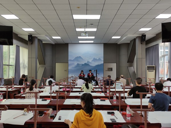 主持人宣布完比赛规则和评分标准后,比赛正式开始。比赛分为毛笔字和粉笔字两个决赛组别。在毛笔字比赛中,选手们挥洒笔墨,运笔时如行云流水,勾勒出书法的线条美;在粉笔字比赛中,选手们认真书写,笔法工整,尽情挥洒手中的粉笔,尽显书法之美。最后,美术学院书法系主任杨金国为此次大赛进行了最终点评。