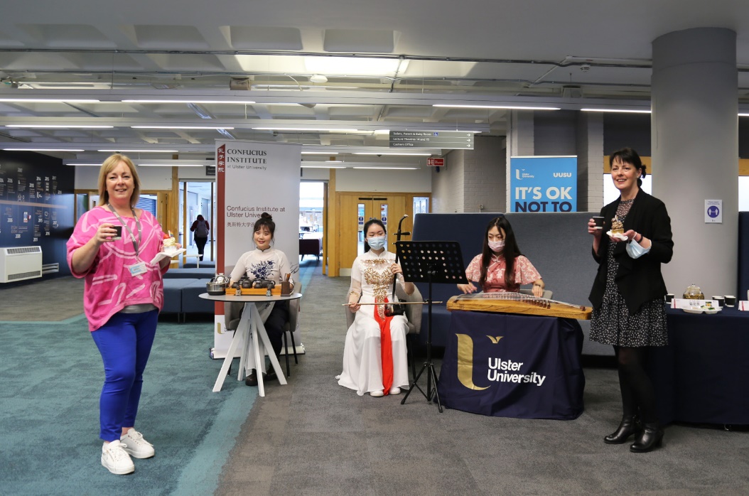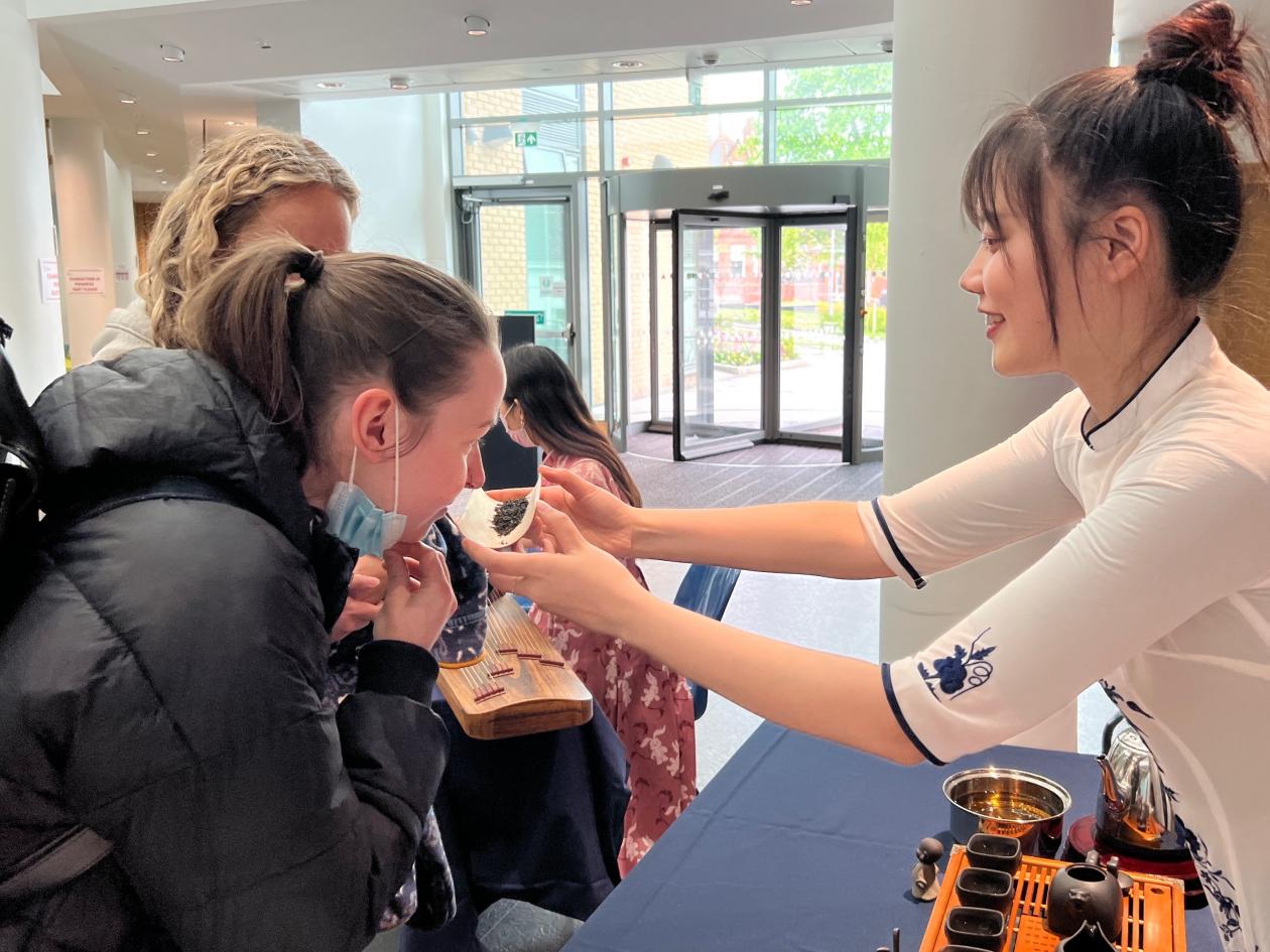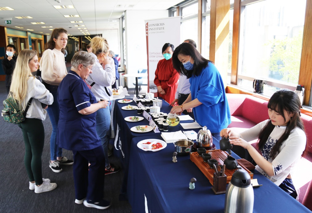 (2022年5月,威廉希尔官网孔子学院在奥斯特大学贝尔法斯特各校区开展了为期四天的中国茶文化体验活动。)