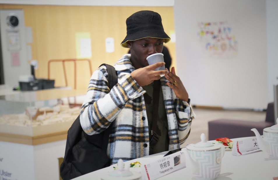活动现场,孔院教师为师生展示中国传统茶艺的冲泡步骤,不少学生表示这是他们第一次亲眼见到中国茶叶,觉得十分新奇,纷纷凑近了观察茶叶的形状、体验茶叶的味道。