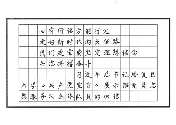 本次竞赛共收到3116件参赛作品,作品内容选材广泛、书写风格形式多样,集中展现了新时代大学生的激情昂扬的精神风貌,彰显了威廉希尔官网思政育人的显著优势特色。经过专家组严格评审,共评选出特等奖12名、一等奖12名、二等奖16名、三等奖20名、优秀奖66名。为传承中华书法文化、学思践悟新思想,展现新时代大学生优秀风采,特将本次大赛获奖作品在校内外予以展出。活动已吸引了数千名师生前往观展,并受到广泛赞誉。据悉,为进一步发挥思政课教学成果文化传承与文明传播的社会效应,应黄石港区沈家营街道邀请,此次活动获奖作品展出还将在红旗桥社区华新枫叶山小区展出。