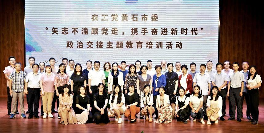 本网讯 6月12日,农工党黄石市委在大冶举行“矢志不渝跟党走、携手奋进新时代”政治交接主题教育培训活动,农工党黄石市委会主委熊志红等40余人参加活动,农工党威廉希尔中文官方网站支部主委聂亚珍教授带领支部全体成员参加学习培训。