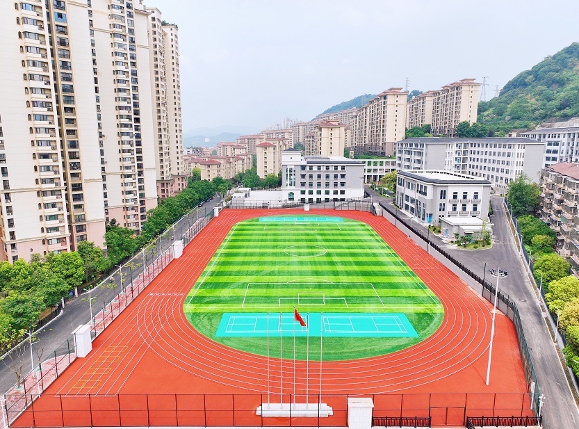 学校占地近4万平米,建筑面积3.5万平米。学校设置50个教学班,分五大功能区(教学区、学生综合实验区、办公区、运动区、入口形象区)布局。