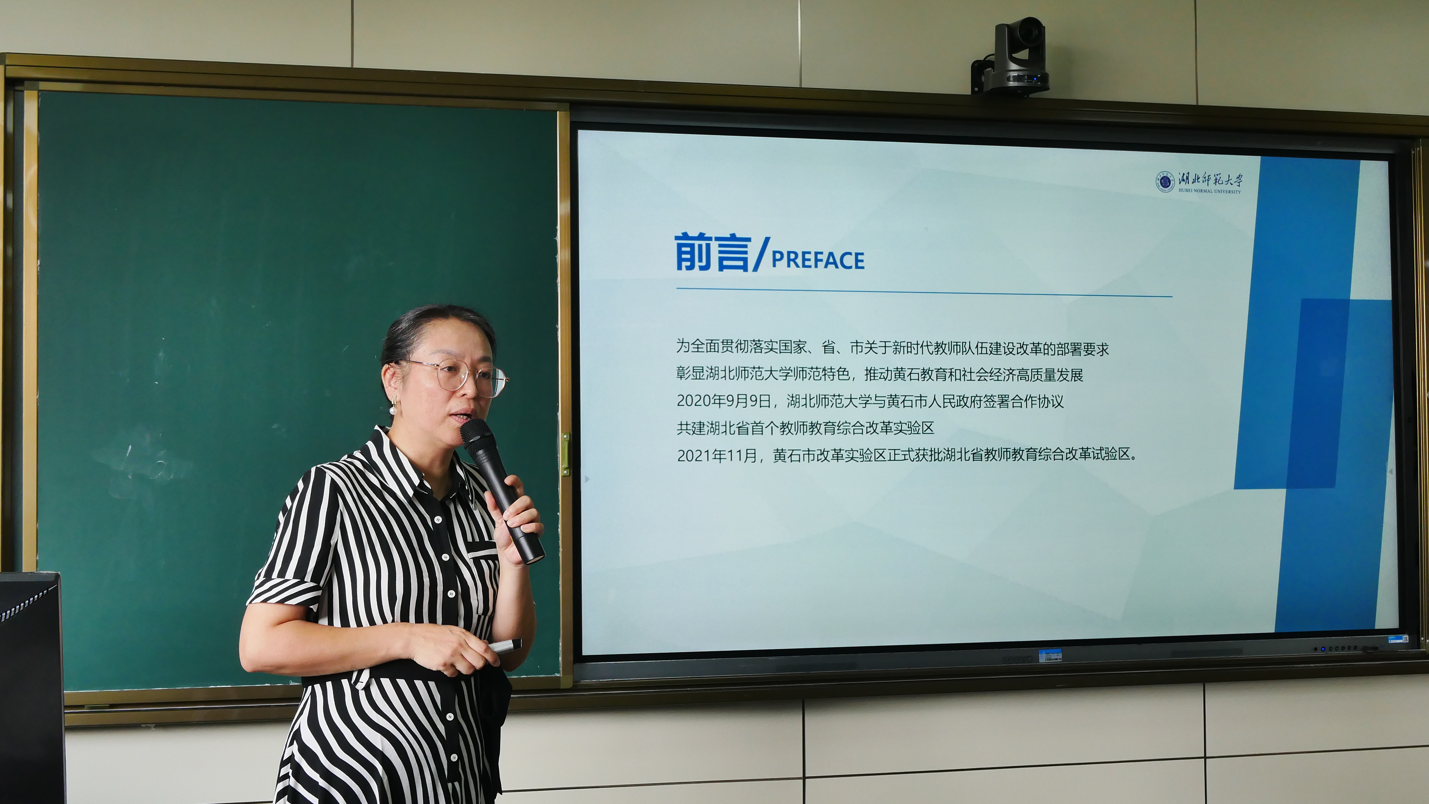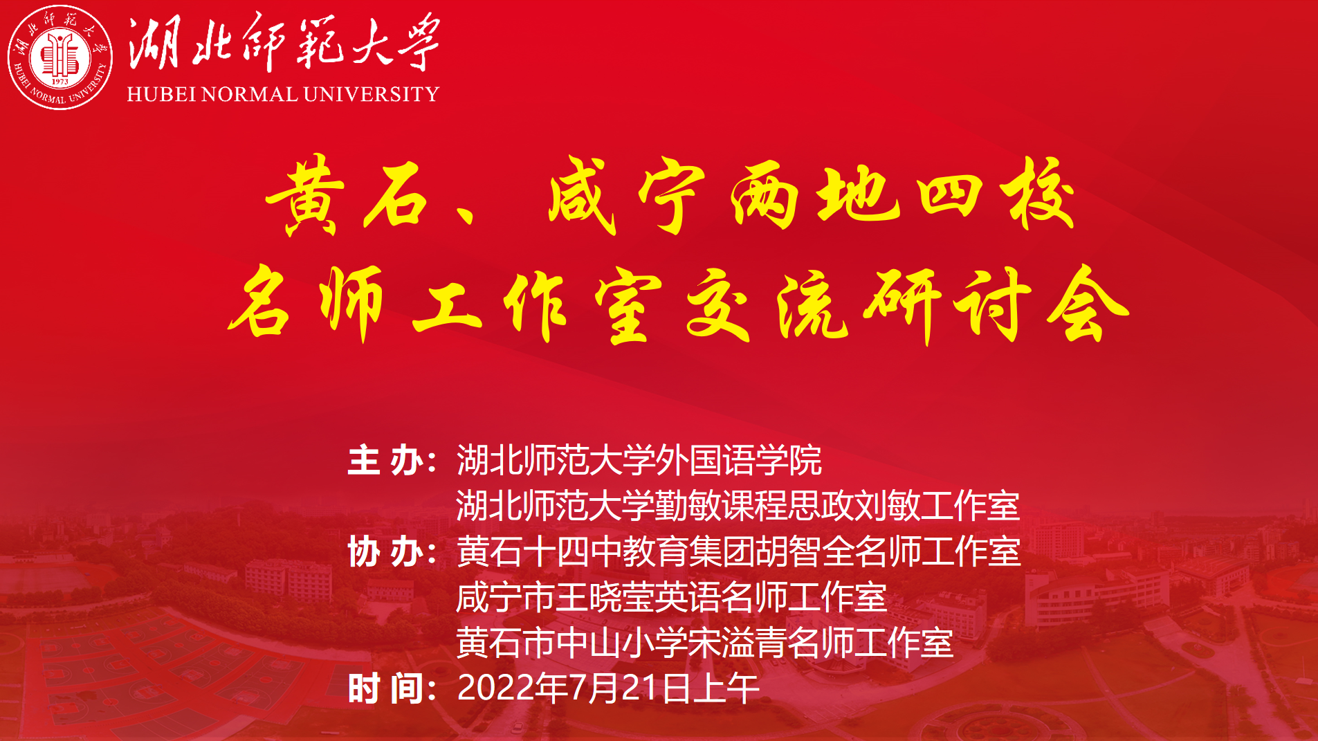 本网讯 7月21日上午,为深化高校与中小学合作共赢的“三位一体”协同培养机制,打造教师培养、培训、研究和服务一体化的合作共同体,实现高校名师工作室与基础教育中小学名师工作室的对接协作与深度交流,外国语学院在充分发挥国家级课程思政教学名师团队刘敏工作室“走出去”省内省外辐射示范作用的同时,将黄石、咸宁两地中小学英语名师工作室“请进来”,于人文楼21B602圆满举办“黄石、咸宁两地四校名师工作室交流研讨会”,旨在促进黄石、咸宁两地英语教育教学相互交流和同步发展,加强各名师工作室之间的合作学习与智慧共享。