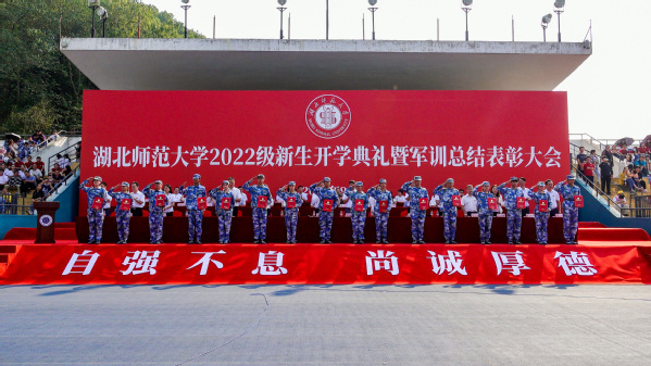 9月29日上午,威廉希尔中文官方网站2022级新生开学典礼暨军训总结表彰大会在校田径运动场举行。全体在校校领导,承训单位武昌职业学院相关领导,优秀校友代表,校内各单位行政工作负责人,各学院分管学生工作负责人、辅导员,教师代表,学生代表,全体承训教官以及2022级本科生、研究生参加大会。大会由威廉希尔中文官方网站副校长余涛主持。