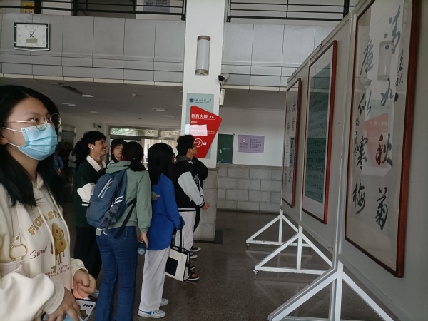 自书法展开展以来,学校各单位组织师生有序开展参观活动,师生在鉴赏优秀书法作品的同时也受到作品中字里行间廉政文化的有力熏陶。书法作品展现出的廉政文化、弘扬出的清风正气,引导着知廉、尚廉、践廉的校园风尚,营造了优良党风带动教风、学风、校风建设的良好文化环境,也进一步丰富了清廉湖师建设内容,为学校喜迎党的二十大胜利召开营造了良好氛围。