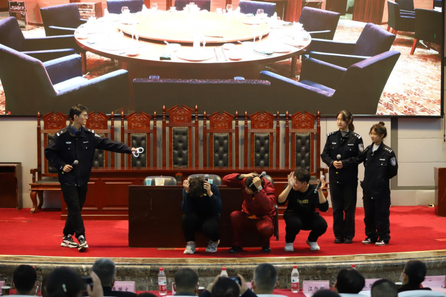 活动现场,来自经济管理与法学院的研究生和大学生,化身为法庭上的“审判长”“审判员”“书记员”“公诉人”“辩护人”“法警”“证人”“被告人”等各个角色,开启了一场融知识性、教育性、警示性于一体的情景体验活动。