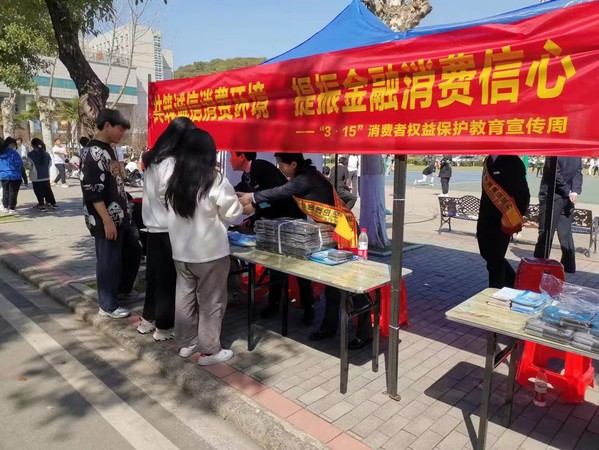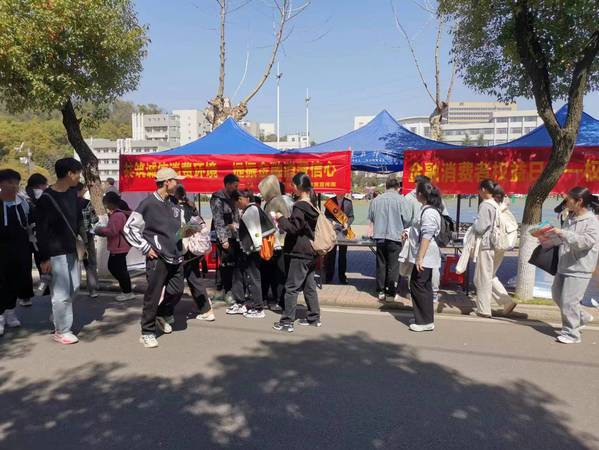 本网讯 3月14日,为进一步学习宣传贯彻党的二十大精神,学生工作部(处)联合中国建设银行黄石分行、中国建设银行黄石沈家营支行在湖师大道开启了主题为“共筑诚信消费环境,提振金融消费信心”3·15国际消费者权益日系列活动。