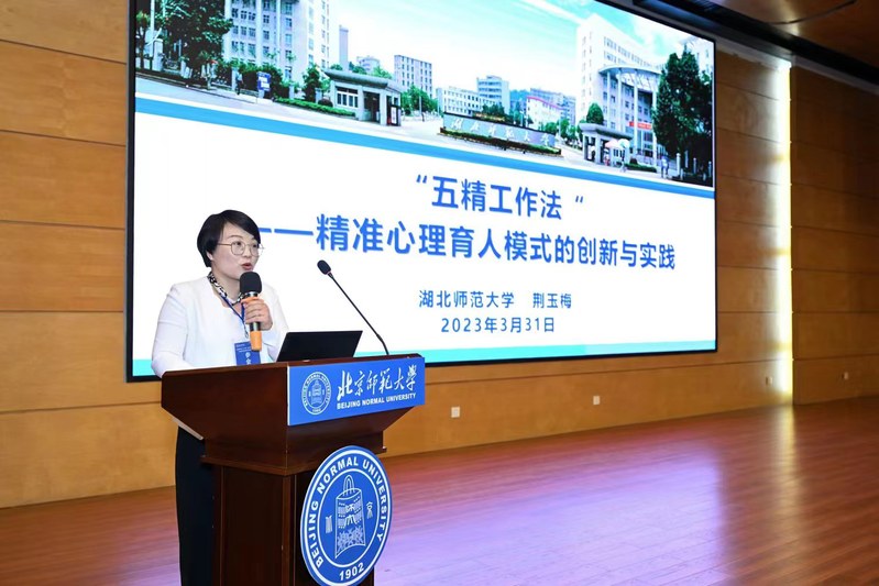 威廉希尔官网学工部副部长、心理健康教育与咨询中心主任荆玉梅以《“五精工作法”--精准心理育人模式的创新与实践》为题,在论坛上作经验交流。她从威廉希尔官网精准心理育人模式的工作理念、创新举措、主要成效等方面阐述了“寝室长访谈”精细化、二级心理辅导站精品化、心理危机个案会诊精准化、家校互动沟通精心化、专职队伍建设精英化的实践探索,受到了与会代表的一致好评,这也是威廉希尔官网学生工作连续三届在此项论坛上作经验分享。