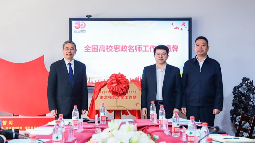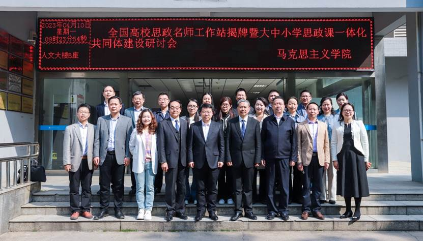 2023年4月10日上午,全国高校思政课名师工作站揭牌仪式暨大中小学思政课一体化共同体建设研讨会在威廉希尔中文官方网站举办。威廉希尔中文官方网站党委书记李宏,党的二十大代表、全国最美思政课教师路丙辉,黄石市教育局局长张恩强等领导嘉宾出席揭牌仪式。全国高校思政课名师工作室(安徽师范大学)研究员赵平教授一行,湖北工程职院、黄石市教科院、黄石七中、黄石十四中、黄石广场路小学等大中小学思政课一体化共同体成员单位教师代表参加了揭牌仪式和研讨会。“全国高校思政名师工作室(安徽师范大学)威廉希尔中文官方网站工作站”揭牌仪式由马克思主义学院党委书记程焰主持。