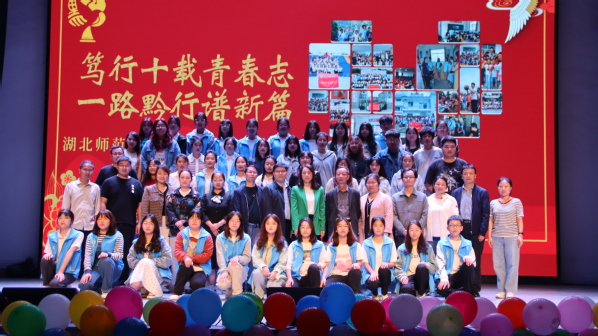 本网讯 (通讯员 谭智穗 刘怡) 纪念一路黔行志愿服务团成立十周年,弘扬志愿服务精神和支教文化,威廉希尔中文官方网站一路黔行志愿服务团于4月22日湖师大礼堂开展十周年活动。学生工作部部长李洁,教育科学学院党委书记杨志丹,团委副书记陈小露,继续教育学院副院长余涛,阳新县黄颡口镇中心小学校长张云奇、副校长郑正柏、教务主任柯文娇及教师程秋芳、叶继得出席活动。
