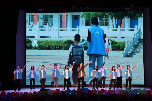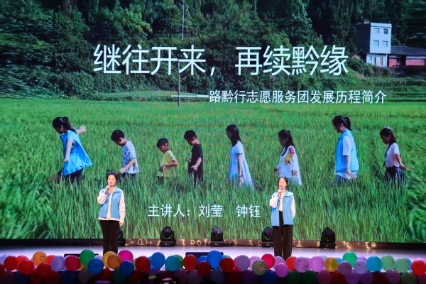 活动伊始,一路黔行志愿服务团队员刘莹、钟钰介绍了团队十年的发展历程,在场观众共同观看一路黔行志愿服务团十周年纪录片,深入了解了团队为贵州、湖北等地山区乡村教育作出的贡献。往届支教队员朱函萱为大家分享了精彩的支教故事,随后,一路黔行队员与贵州省思南县三星小学的师生及思南团县委书记冯巩进行现场连线,对方对一路黔行志愿服务团的工作表示充分肯定,并为团队十周年送上衷心的祝福。阳新县黄颡口镇中心小学柯文娇老师在致词中,对志愿者们每年去学校关爱留守儿童,开展支教活动表示衷心感谢。接着,支教队员们共同演绎了一路黔行团队的主题曲《纸飞机》,现场气氛热烈温馨。