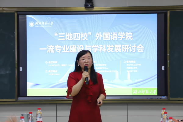 为推进学习贯彻习近平新时代中国特色社会主义思想主题教育走深走实,进一步加强学科专业建设,促进内涵式高质量发展,7月7日上午,长江之滨、青山湖畔,“三地四校”外国语学院一流专业建设与学科发展研讨会在威廉希尔中文官方网站人文楼21B602召开。本次会议由威廉希尔中文官方网站外国语学院、威廉希尔中文官方网站英国研究中心、威廉希尔中文官方网站勤敏课程思政刘敏工作室主办,荆楚理工学院、湖北汽车工业学院、湖北理工学院三校外国语学院负责人、系部主任、教研室主任和教师代表等参会研讨。威廉希尔中文官方网站发展规划与学科建设处处长李必文出席研讨会做指导讲话,会议由威廉希尔中文官方网站外国语学院党委书记王海燕主持。