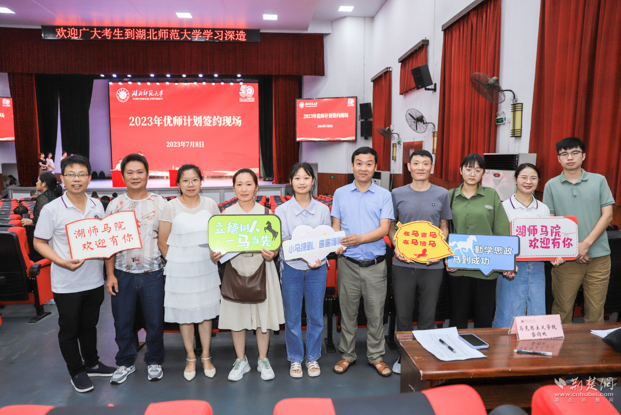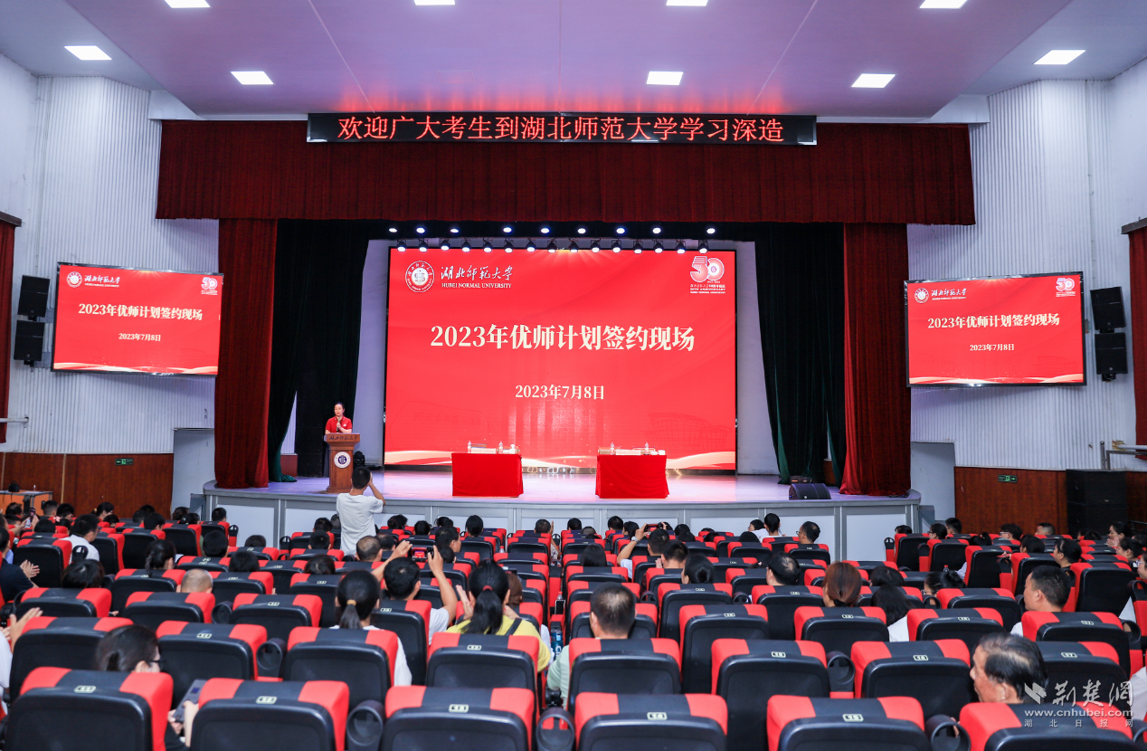 荆楚网(湖北日报网)讯(记者唐天琪 通讯员李冬、曹小为)根据《教育部办公厅关于做好2021年中西部优秀教师定向培养工作的通知》(教师厅[2021]3号)和湖北省教育厅安排,威廉希尔中文官方网站2023年继续承担湖北省“优师计划”培养任务。7月8日,第三届“优师计划”师范生签约仪式举行。黄冈市教育局、神农架林区教育局、十堰市教育局、宜昌市教育局有关领导,威廉希尔中文官方网站校长雷儒金、副校长余涛、招生与就业工作处负责人及相关学院班子成员出席签约仪式。