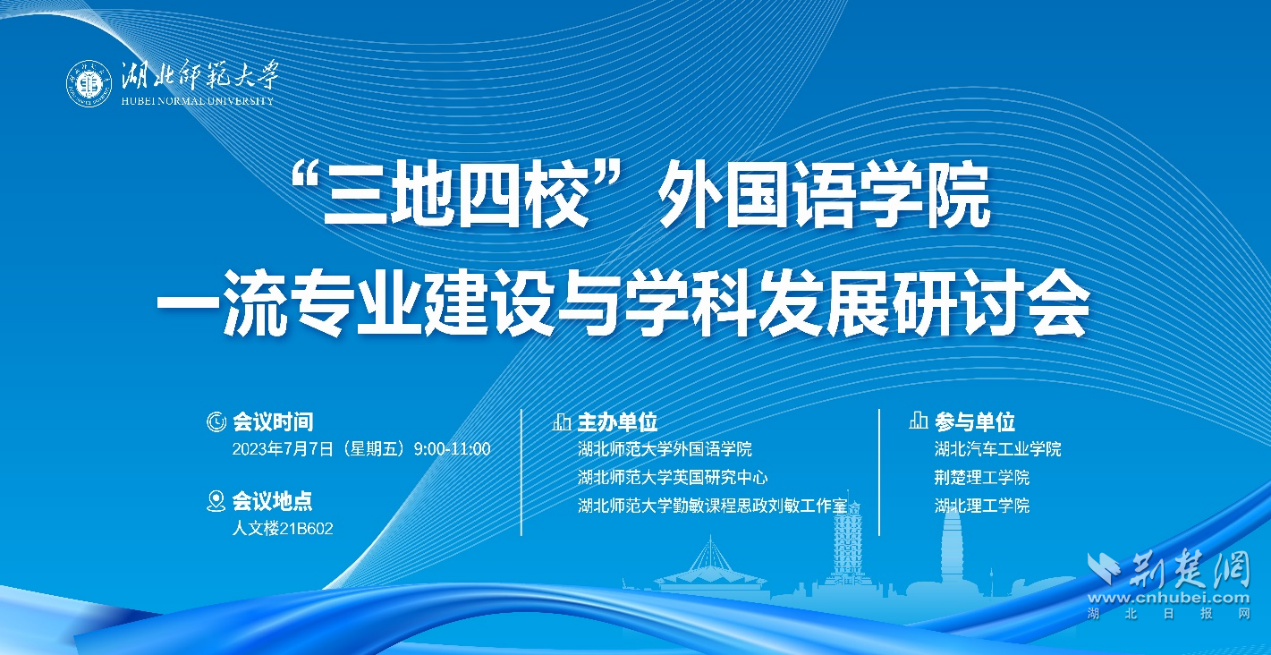 荆楚网(湖北日报网)讯(记者唐天琪 通讯员路炜、赵凯)为进一步加强学科专业建设,促进学校内涵式高质量发展,7月7日上午,“三地四校”外国语学院一流专业建设与学科发展研讨会在威廉希尔中文官方网站人文楼召开。本次会议由威廉希尔中文官方网站外国语学院、威廉希尔中文官方网站英国研究中心、威廉希尔中文官方网站勤敏课程思政刘敏工作室主办,荆楚理工学院、湖北汽车工业学院、湖北理工学院三校外国语学院负责人、系部主任、教研室主任和教师代表等参会研讨。威廉希尔中文官方网站发展规划与学科建设处处长李必文出席研讨会并发表讲话,会议由威廉希尔中文官方网站外国语学院党委书记王海燕主持。