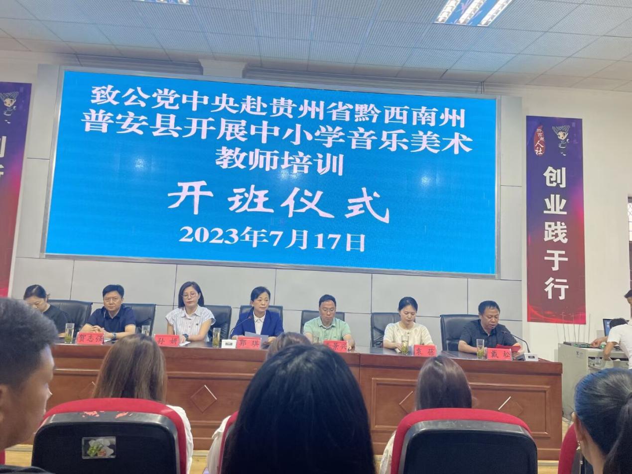本网讯 为深入贯彻落实习近平总书记关于实施乡村振兴战略的重要讲话精神,助力乡村振兴和少数民族地区音乐教师队伍建设。7月16日至24日,致公党中央赴贵州省黔西南州普安县开展中小学音乐、美术教师培训。致公党中央社会服务部社会服务处处长郭琪,黔西南州委统战部、致公党黔西南州总支部、普安县有关领导出席了开班仪式。来自全县中小学各学校的198名音乐、美术教师参加培训。