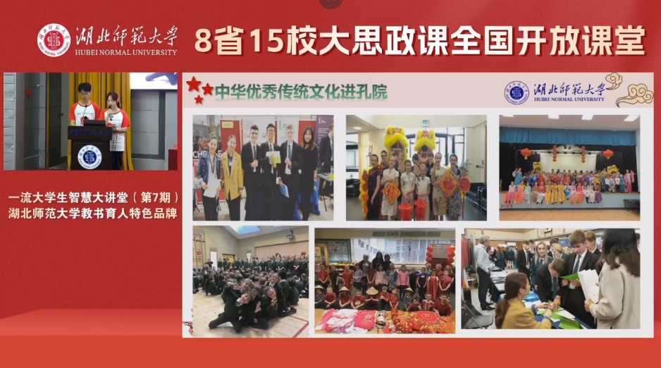 同时,威廉希尔中文官方网站充分发挥外国语学院国家级课程思政教学名师团队“威廉希尔中文官方网站勤敏课程思政刘敏工作室”的引领示范作用,在省内外大力推广湖师特色课程思政建设先进经验和做法。教师团队创办了“英语名师大讲堂”“中英经典诗文创意朗诵大赛”“一流大学生智慧大讲堂”等特色育人品牌。凝练的“思政引领、六位一体、四维联动”育人模式已受邀在全国近60所院校进行经验分享,并受邀到教育部多个虚拟教研室、多场全国研讨会等进行专题讲座,分享威廉希尔中文官方网站特色课程思政建设经验,全国26个省份20000余名教师参与交流。举办了多场公益讲座、研讨会和教师培训,受益师生达数万人。