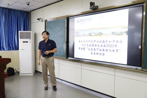 讲座伊始,丰国欣教授介绍了威廉希尔官网英国研究中心应邀参加中国欧洲学会英国研究分会2023年年会暨“大变局下的英国与世界”学术研讨会和中国英汉语比较研究会第四届英汉对比与翻译研究学科建设论坛暨潘文国学术思想研讨会的相关情况,拉开了学科专业课程一体化建设系列学术讲座的序幕。对于未来英国研究中心的工作,他提出“两打通、三步走”的工作思路:打通联系英国研究最高学术机构“最后一公里”,打通与英国合作渠道;近期完成四项工作(国际论坛、学术刊物、研究队伍、咨政服务等),中期完善学科建设布局,长期目标建成国家智库。