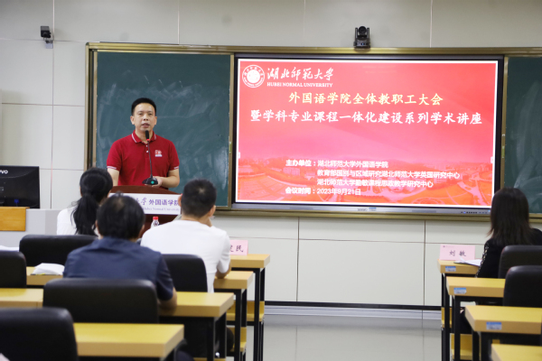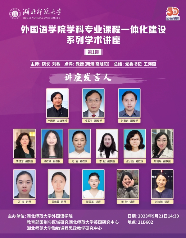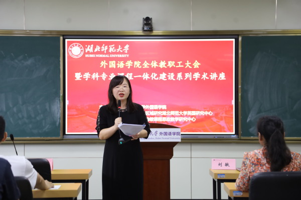 本网讯 为积极探索“学科-专业-课程”一体化建设的发展新路径,9月21日下午,外国语学院在人文楼21B602举办学科专业课程一体化建设特色学术讲座。校科学研究发展院院长刘建民、外国语学院党委书记王海燕、院长刘敏、党委副书记蔡惠芳、副院长项军平以及学院全体教职工参加会议,会议由刘敏主持。