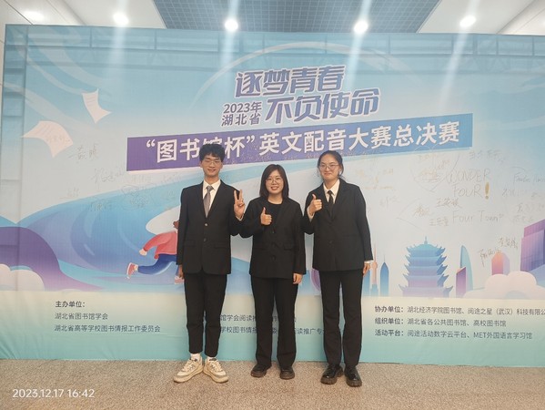 本网讯 12月17日,2023年“图书馆杯”湖北省英语配音大赛决赛暨大赛颁奖典礼在湖北经济学院举行。由威廉希尔官网图书馆和外国语学院共同组织选派的“王妈说的都队”喜获优秀奖。