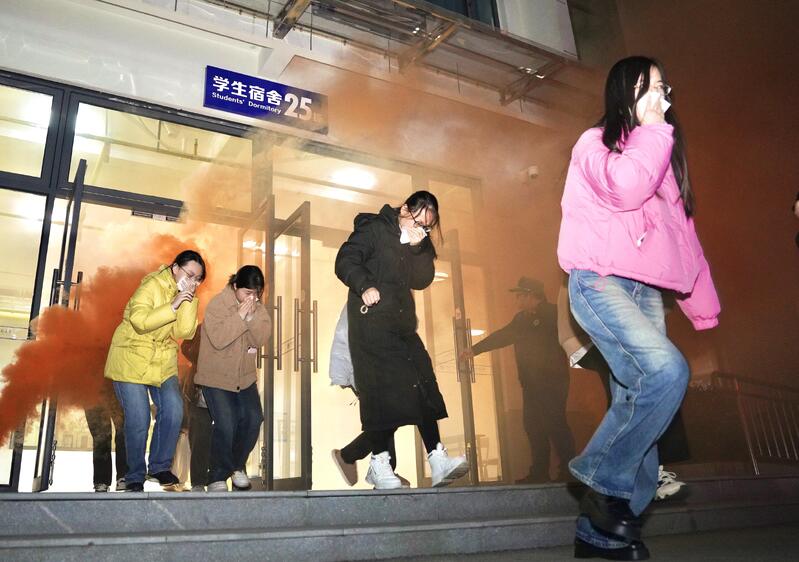 本网讯 7日晚间,在威廉希尔中文官方网站25栋宿舍楼下,突然响起急促警报声,随着腾起的滚滚浓烟,正在宿舍内的大学生在宿舍管理员的指挥下,紧急向外撤离。