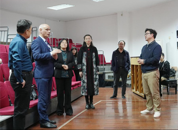 本网讯 4月8日,英国奥斯特大学艺术、人文和社会科学学院院长汤姆·马奎尔(Tom Maguire)教授来校访问,学校国际处举行欢迎仪式并组织接待,同教育科学学院、文学院、外国语学院、音乐学院等单位一起召开学院对接座谈会。下午,马奎尔教授深入音乐学院实地参观并开展艺术专业专场交流会。