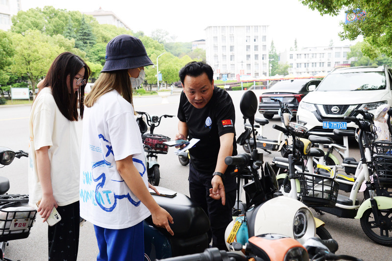 据悉,当天共发放首批电动自行车校园号牌90余块,剩余号牌将在未来两个月内逐步发放完毕。从今年7月1日起,无校园号牌的电动自行车将禁止进入湖师大校园。(记者 李飞 文/摄)