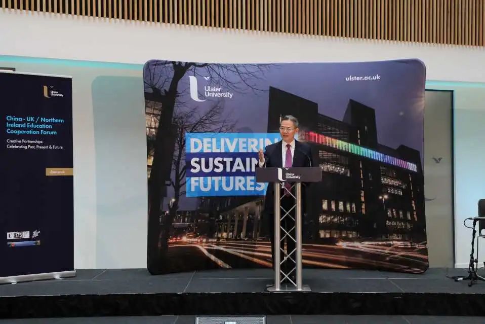 2024年5月1日,中国驻英国大使郑泽光应邀出席在贝尔法斯特市奥斯特大学举办的中英/北爱教育合作论坛并发表题为《坚持开放合作正确方向》的主旨演讲。