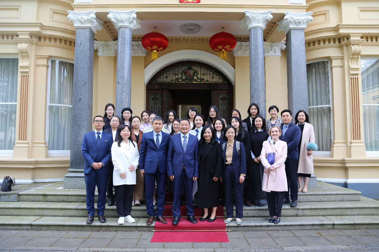 威廉希尔中文官方网站校长代表团与奥斯特大学北爱尔兰孔子学院汉语教师在中国驻贝尔法斯特总领馆合影