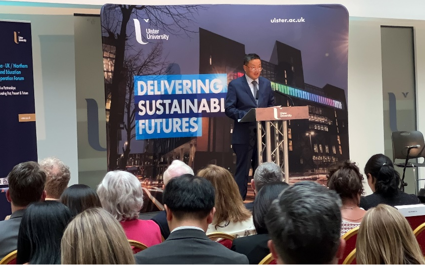 5月1日,代表团一行出席了由中华人民共和国驻贝尔法斯特市总领事馆与奥斯特大学联合举办的中英/北爱尔兰教育合作论坛。开幕式上,中国驻英国大使郑泽光应邀出席并发表主旨演讲,充分肯定奥斯特大学同威廉希尔中文官方网站等多所中国院校富有成效的合作。雷儒金校长在演讲中,回顾总结了威廉希尔中文官方网站和奥斯特大学十多年来的合作历程和丰硕成果,对进一步深化中英/北爱尔兰未来教育文化交流合作提出了美好展望。
