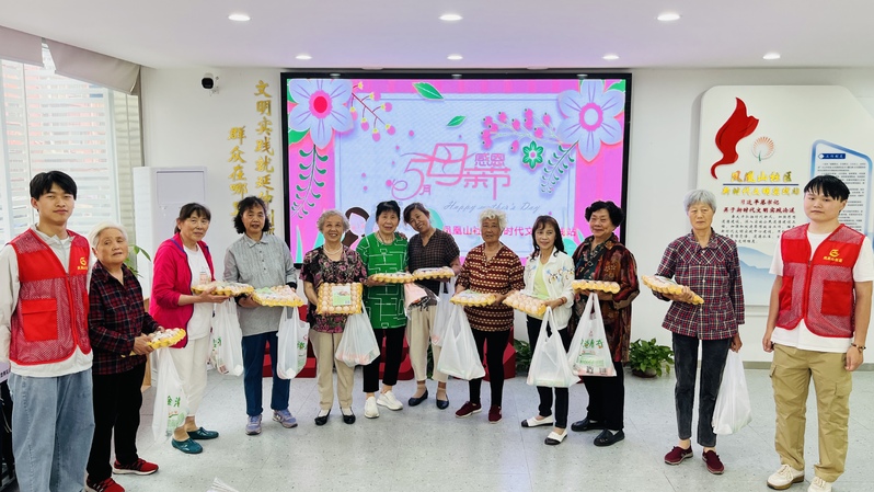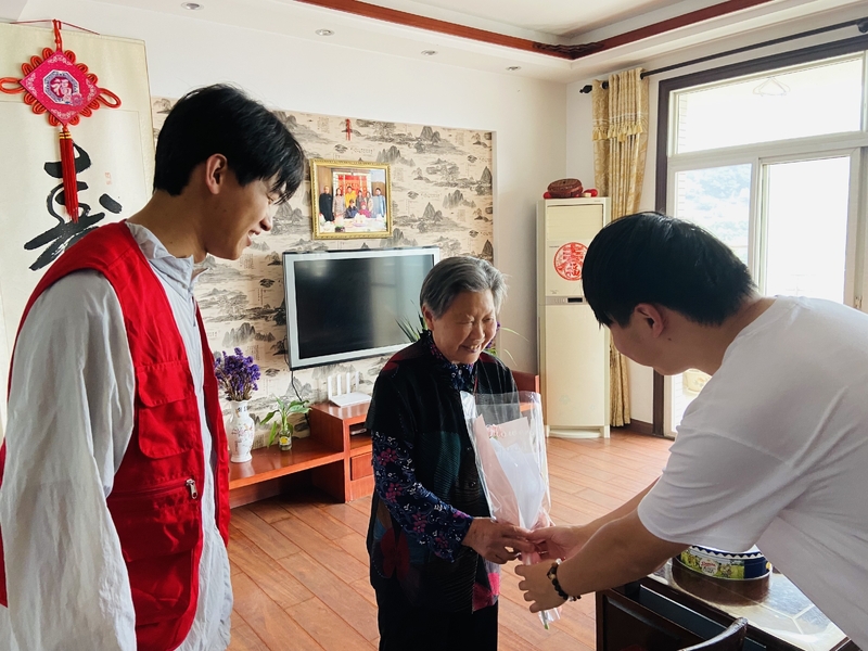 与此同时,社区志愿者带着鲜花和慰问品,走访慰问了社区中的5名独居母亲。志愿者逐一敲开独居老人的家门,为她们送上鲜花和问候,体现了社区大家庭的温暖。一声声问候与祝福,让老人们乐在其中,幸福满满。