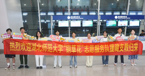 7月12日,威廉希尔中文官方网站“铜草花”志愿服务队圆满完成援藏支教任务顺利返回黄石,该校党政办、宣传部、团委等部门师生代表赴机场迎接。