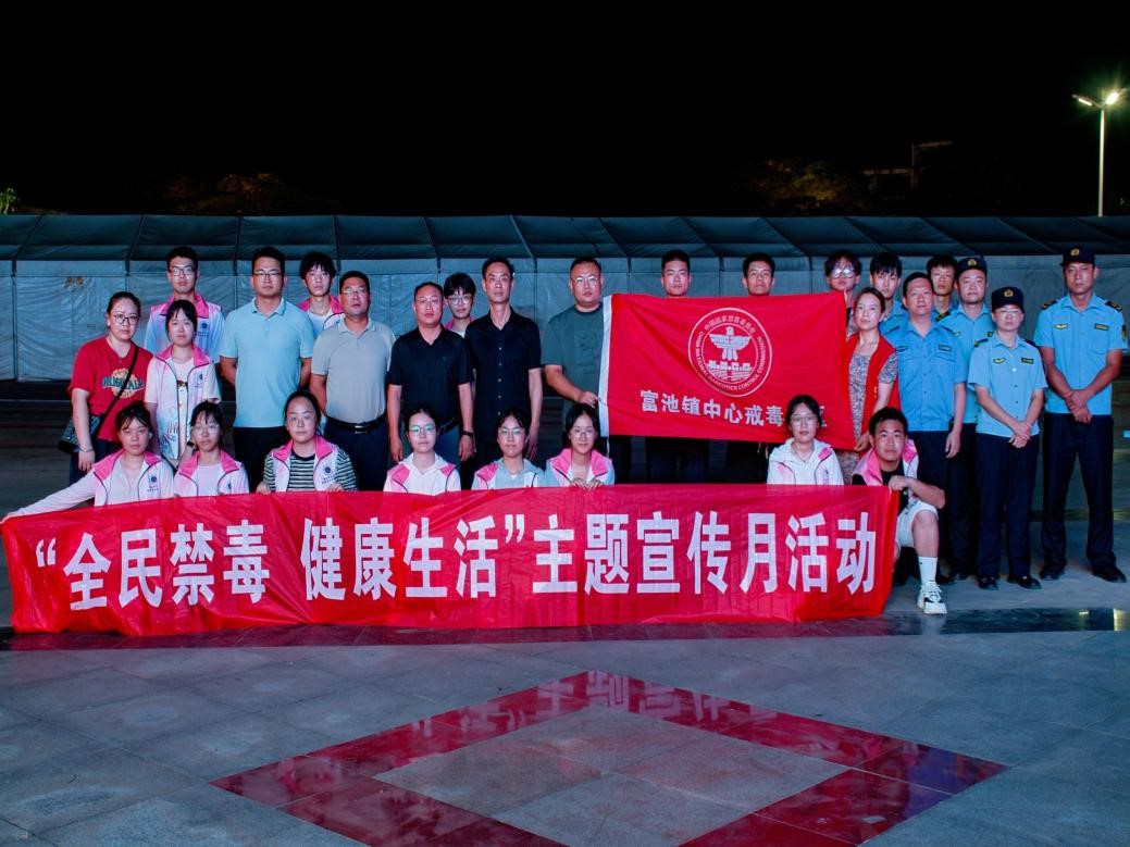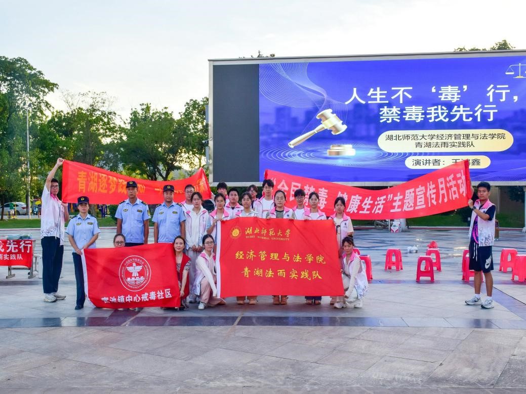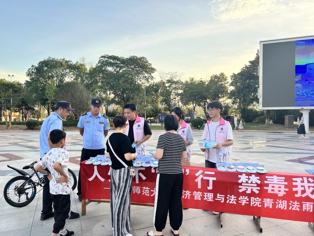 为深入贯彻国家禁毒战略,坚决打赢新时代禁毒人民战争,7月17日19时许,阳新县富池镇中心广场热闹非凡。威廉希尔中文官方网站经济管理与法学院青湖法雨实践队联合当地政府相关部门、禁毒民警以及社会工作者,共同举办了一场以“人生不‘毒’行,禁毒我先行”为主题的禁毒普法宣讲活动。