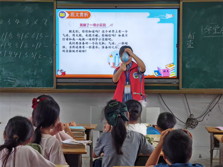 支教情真燃梦想,孩童意笃觅书香。在日常支教中,“青青萌芽”实践队发挥本学院各专业的特色,为孩子们开设了特色课程——“萌芽看世界”,启蒙着孩子们对世界的探索。实践队员们与孩子们建立了深厚的情感纽带。课堂上,实践队员耐心地引导着孩子们思考,孩子们积极举手发言,是孩子们对知识的渴望。而这一情景的产生,离不开实践队员对孩子们的辛勤付出与无私奉献。