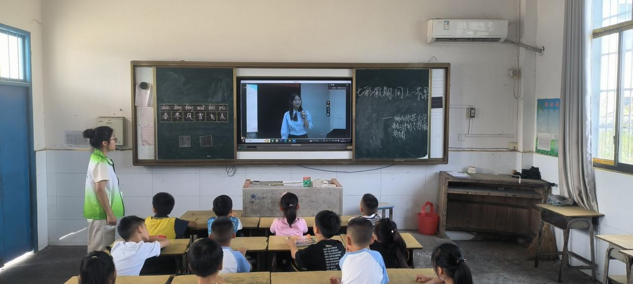 “彩虹计划”青年志愿者们与孩子们亲密接触,朝夕相处,为他们提供作业辅导、思政教育、知识科普、兴趣手工、体育锻炼等多样课堂,填补留守儿童暑期教育空缺,加强陪伴,拓展知识视野,为乡村基础教育贡献师范生力量。