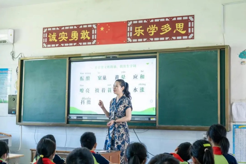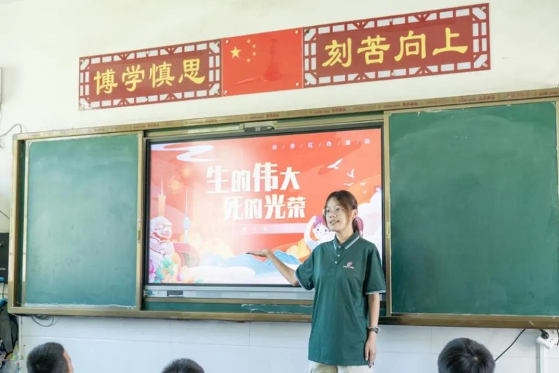 推普实践队走进阳新县滑石学校,举行“领航新希望,经典润乡土”志愿服务活动。活动期间,国家级普通话测试员周秋莲教授为学生讲授经典名篇语文课——朱自清的《春》;推普队员开设红色教育课堂,讲述革命英雄的先进事迹;阳新县滑石小学的留守儿童以真挚的情感、极具感染力的声音,精彩演绎了《如果信仰有颜色》《歌唱祖国》;在活动现场,校领导和实践队员为留守儿童送上书包和文具等爱心物资。从字词读音校正,到诵读技巧传授,再到革命精神解读,红色基因与经典文化得以传承与弘扬,爱心物资更是承载了温暖与希望。
