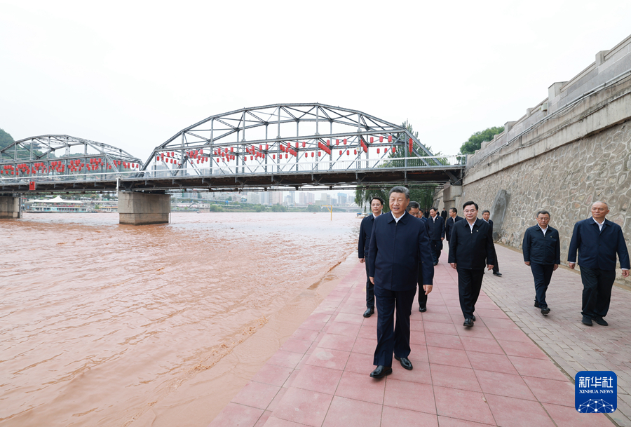 这是11日下午,习近平在黄河兰州中山桥段考察。新华社记者 王晔 摄