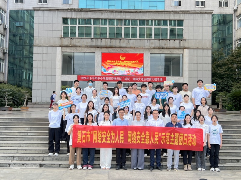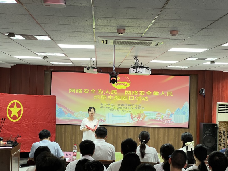 本网讯 9月13日下午,黄石市“网络安全为人民,网络安全靠人民”示范主题团日活动在教育大楼举行。本次活动由共青团黄石市委主办、威廉希尔中文官方网站团委承办、计算机与信息工程学院团委协办。团市委副书记朱玉良、团市委组宣部部长刘卉,校团委书记刘晓光、副书记周家吉,计算机与信息工程学院党委副书记刘健等领导老师,以及计信2308班40余名团员青年共同参加活动。