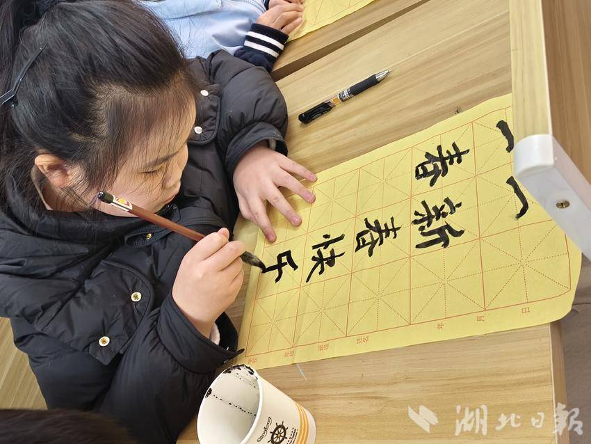 在志愿者的悉心指导下,孩子们迫不及待地拿起毛笔进行书写。有的孩子初握毛笔,手有些颤抖,但在老师的鼓励下逐渐找到了感觉;有的孩子则有模有样地模仿老师,一笔一划认真书写。经过一番努力,孩子们终于完成了自己的春联作品。虽然笔法稚嫩,但每一副春联都蕴含着孩子们对新年的美好祝愿和对传统文化的热爱。