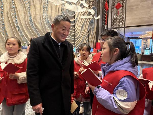“叔叔您好!我是黄石日报小记者明诗怡,可以采访您一个问题吗?”明诗怡礼貌询问对方,在获得市政协委员肖新建的允许后,她大方提问,“请问春节期间有什么活动让您印象深刻?”肖新建微笑回应:“为了迎接蛇年的到来,黄石各大景区开展了丰富多彩的新春活动,其中未苏湾的打铁花、烟花秀等活动给我留下了深刻印象。”