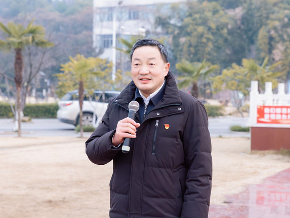 升旗仪式上,校国旗班护送国旗入场,五星红旗在激昂的国歌声中冉冉升起。礼毕后,雷儒金与邓光君上台启卷,共同开启2025年新岁之初的宏伟篇章。