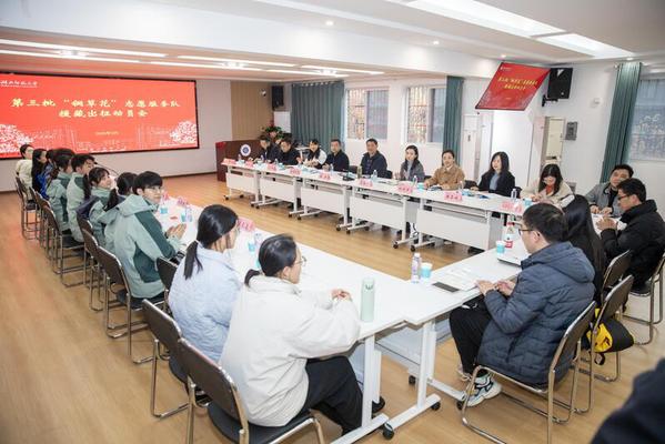 会上介绍了第三批“铜草花”志愿服务队的组建情况,让参会人员对这支队伍有了更深入的了解。随后,举行了庄重的授旗仪式,该校党委常委、副校长余涛将象征着责任与使命的旗帜授予志愿服务队,队员们接过旗帜,也接过了这份沉甸甸的责任。