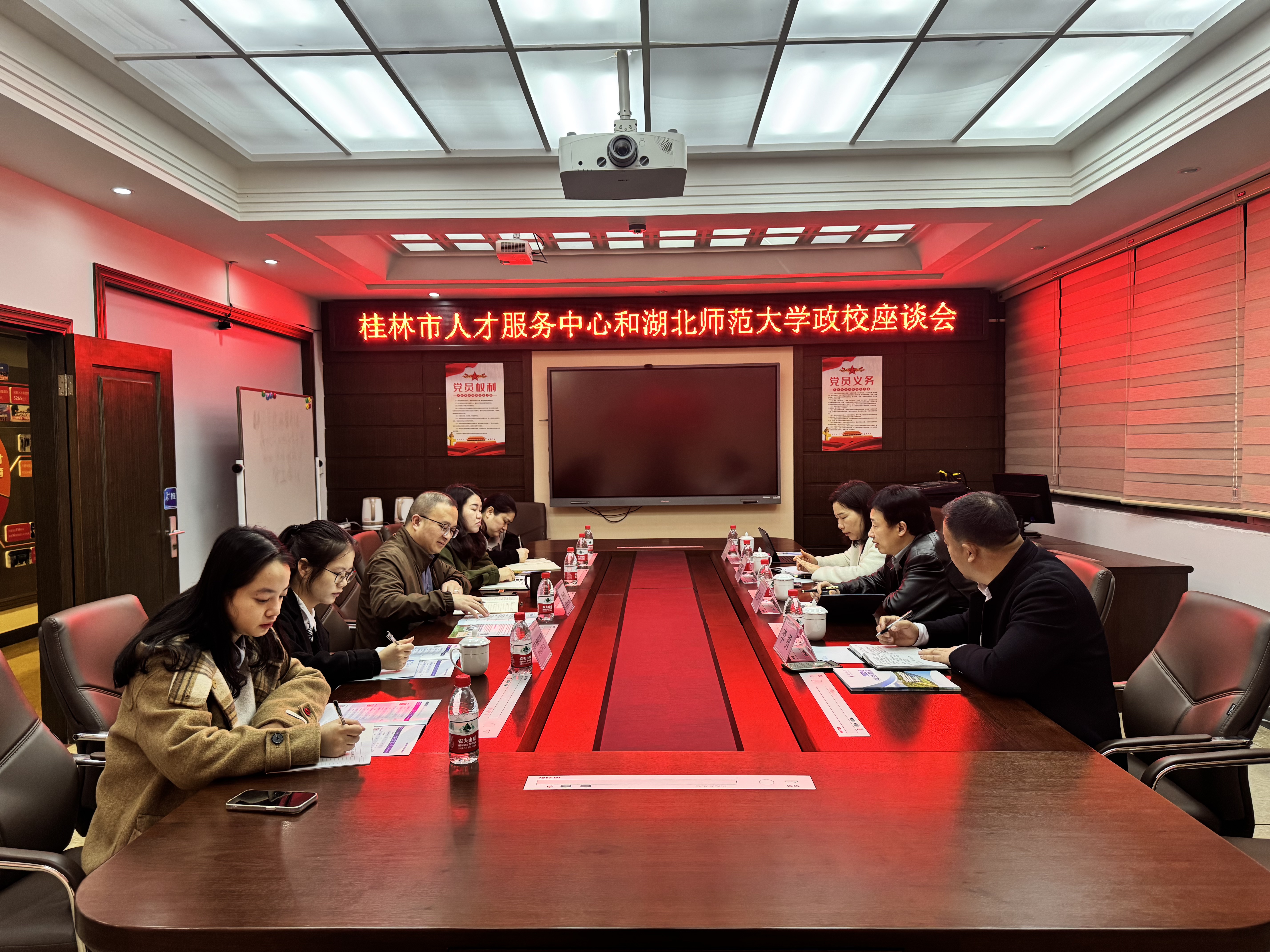 政策赋能:校地共建优化就业服务生态。桂林市人才服务中心调研环节,桂林市人社局相关负责人详细解读了当地高校毕业生就业创业扶持政策,包括留桂计划补贴、创业孵化基地入驻绿色通道等。双方围绕政校行企四方联动机制展开探讨,姜少平提出,将依托中心资源搭建桂林重点企业-湖师毕业生精准对接平台,同时邀请桂林优质企业参与威廉希尔官网春季双选会,为毕业生拓宽就业渠道。