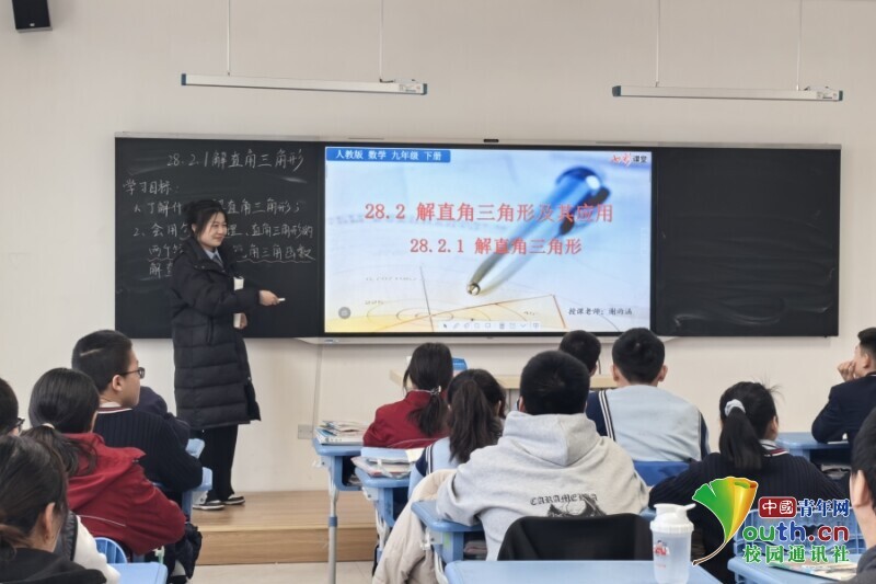 图为实习队员为初中数学组展示一堂九年级的公开课。