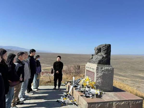 实习队员们在庄严肃穆的烈士纪念碑前整齐列队,向守卫祖国西大门的英烈们致以崇高敬意。随后,援疆教育实习队队长杜家宇为实习队员们讲述了阿拉山口边防连第一任主官吴光胜站长的故事。队员们从中深切感悟到“大风吹不动、诱惑打不动、强敌撼不动” 的戍边精神,爱国情怀得到进一步增强。