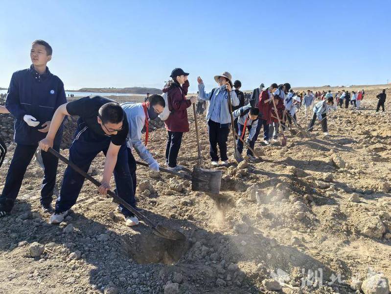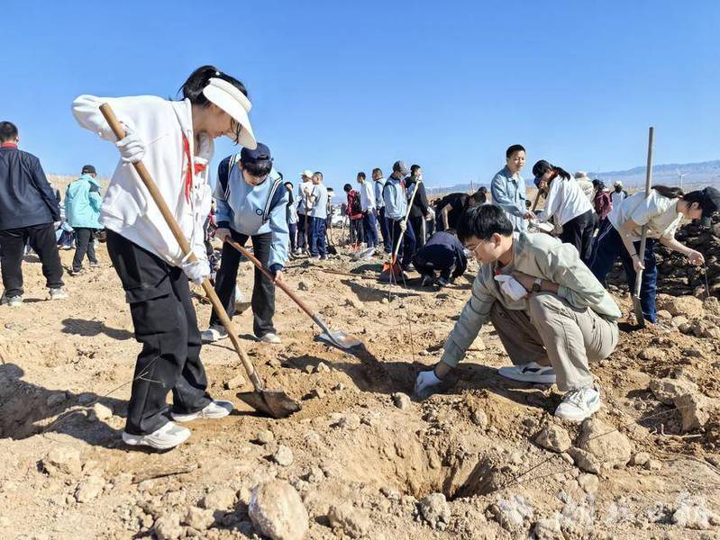 4月11日上午,威廉希尔中文官方网站“研究生教育援疆实习队”在新疆博尔塔拉蒙古自治州威廉希尔中文官方网站附属阿拉山口市中学的组织下,带领学校八年级学生在阿拉山口市“8字湖”旁的戈壁滩开展了一场以“援疆教育扎根边疆,绿色行动再添新篇”为主题的植树活动。此次活动不仅是援疆教育工作的延伸,更是威廉希尔中文官方网站践行生态文明理念、深化鄂疆协作的生动实践。