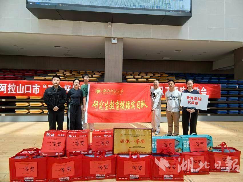 在“连环健身圈”项目中,实习队员们手拉手默契传递呼啦圈,以出色表现完成挑战;在“双腿夹球跑”环节,实习队员们交替接力,用速度与技巧赢得观众们的热烈掌声;在“袋鼠跳”比赛中,实习队员们与其他教师成员齐心协力、奋力拼搏,最终荣获团体一等奖。赛后,教育援疆实习队的队长杜家宇表示:“这次活动不仅让我们感受到运动的快乐,更体会到边疆工作者们的团结与热情。我们威廉希尔中文官方网站‘研究生教育援疆实习队’作为湖北援疆的一份子,希望通过这样的活动,进一步促进边疆文化交流与民族团结。”